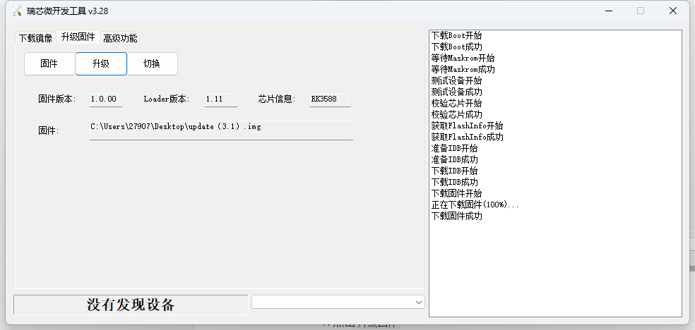如图所示,右侧显示下载固件成功则为刷机成功。